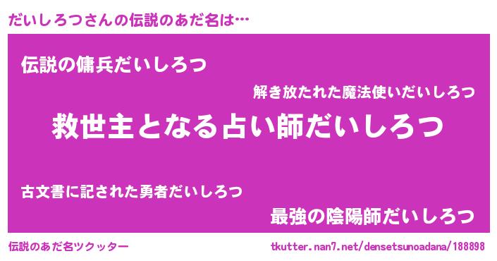| ヒーロー風カッコイイあだ名 | 『慈愛の使者だいしろつ』『銀牙騎士ダイ』 |