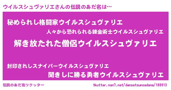 | ポケモン風あだ名 | 『ウイセウス』『ヒウイルスシュヴァリエ』 |