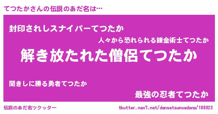 | ヒーロー風カッコイイあだ名 | 『幻影騎士テツ』『スーパーテツタカ』 |