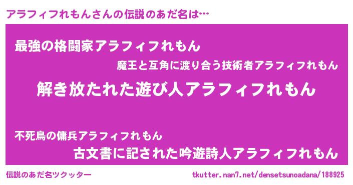 | ポケモン風あだ名 | 『アラセウス』『アーライ』 |