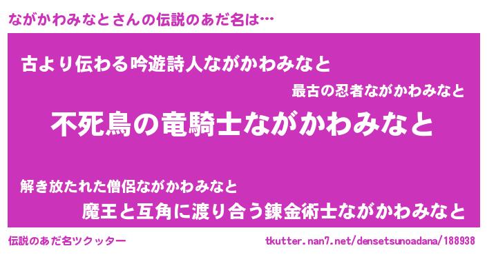 | ヘコむあだ名 | 『ながにー』『ながかわみなと(笑)』 |