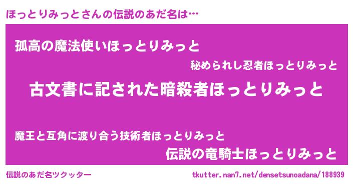 | 意味不明あだ名 | 『永久保存ほっとりみっと』 |