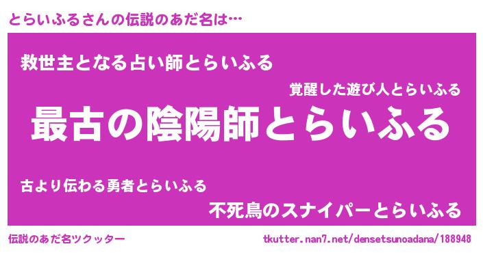| ファンタジー風あだ名 | 『エターナルトライフルー』『トラフェル』 |