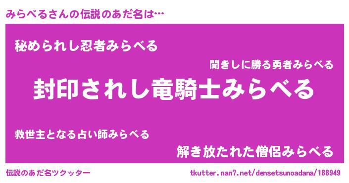 | ヒーロー風カッコイイあだ名 | 『スーパーミラベル』『銀牙騎士ミラ』 |