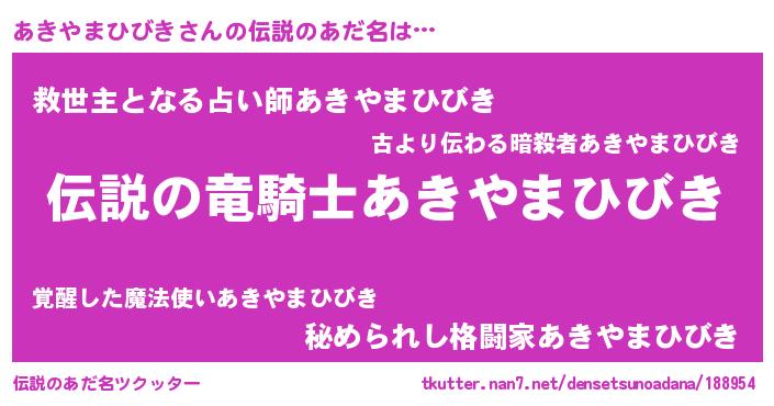 | ヒーロー風カッコイイあだ名 | 『スーパーアキヤマヒビキ』 |