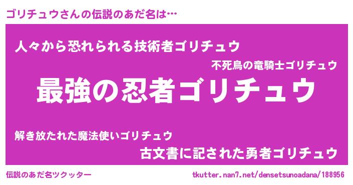 | ヒーロー風カッコイイあだ名 | 『ウルトラゴリチュウマン』 |