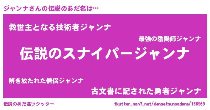 | 男性向けラノベタイトル風あだ名 | 『ジャンナの憂鬱』 |