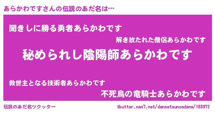 | 意味不明あだ名 | 『住所不定無職あらかわです(77歳)』 |