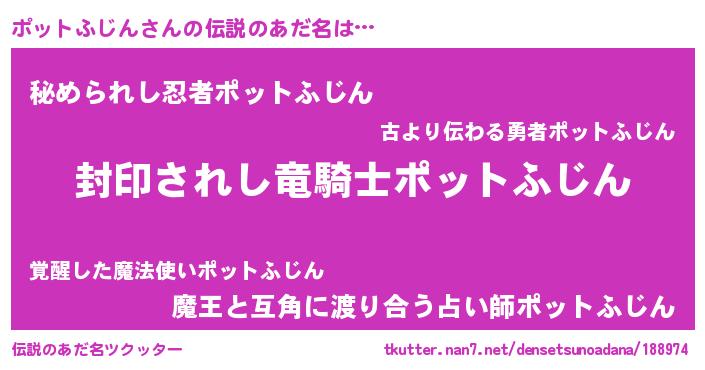 | ヒーロー風カッコイイあだ名 | 『スーパーポットフジン』『仮面ポッダー』 |