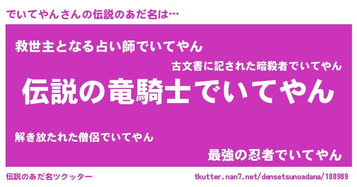 | 男性向けラノベタイトル風あだ名 | 『でいてやんの憂鬱』 |