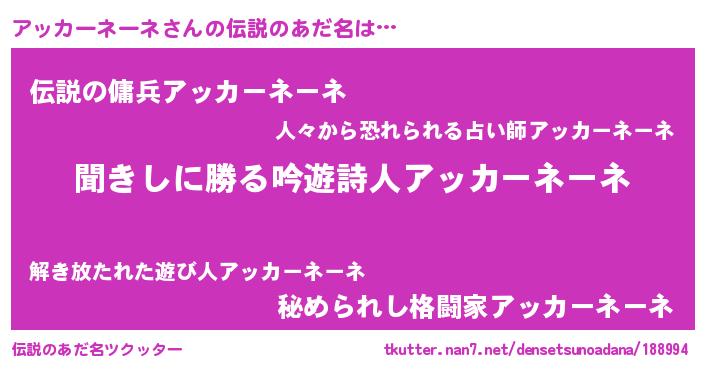 | ヒーロー風カッコイイあだ名 | 『ネオアッカーネーネ』 |