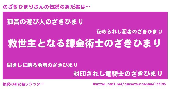 | 男性向けラノベタイトル風あだ名 | 『ノーゲーム・ノーノザキヒマリ』 |