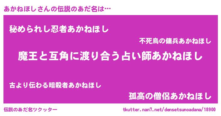 | 男性向けラノベタイトル風あだ名 | 『転生したらあかねほしだった件』 |