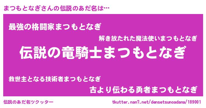 | 男性向けラノベタイトル風あだ名 | 『まつもとなぎの憂鬱』 |