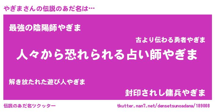 | 意味不明あだ名 | 『眠気覚ましガムやぎま味』『自称やぎま』 |