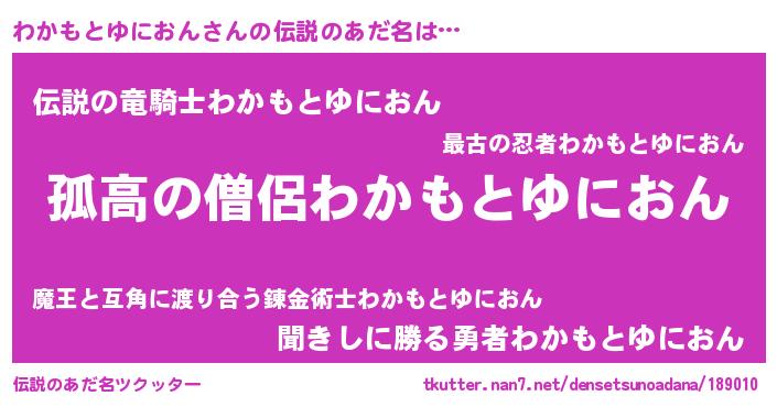 | 意味不明あだ名 | 『とにかく怪しいわかもとゆにおん』 |