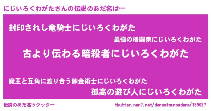 | ポケモン風あだ名 | 『ニジゴンZ』『ニージイ』『ゼニニジ』 |