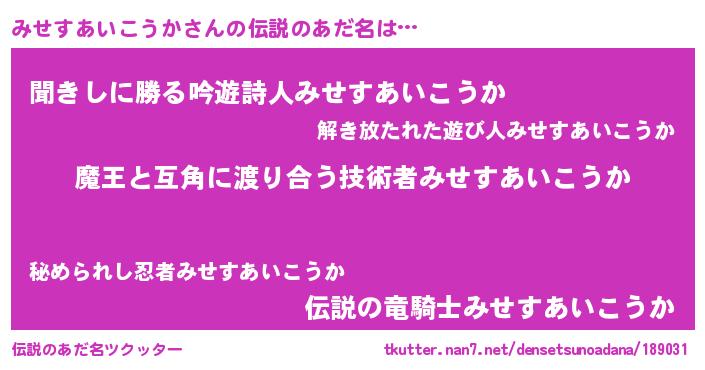 | 女子向けラノベタイトル風あだ名 | 『みせすあいこうか恋絵巻』 |