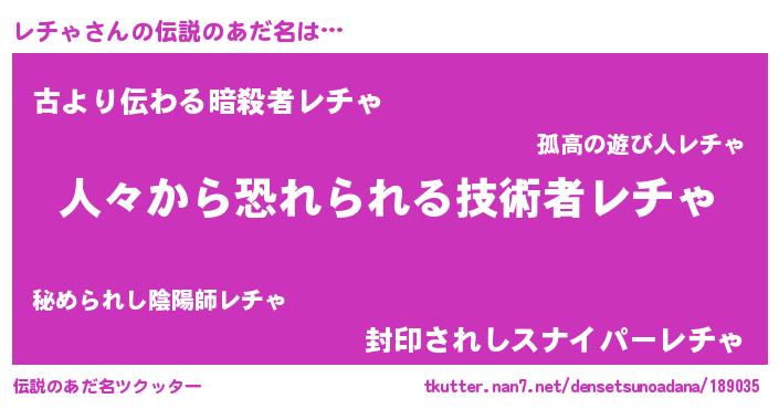 | ヘコむあだ名 | 『レチゃ(笑)』『レチもー』 |