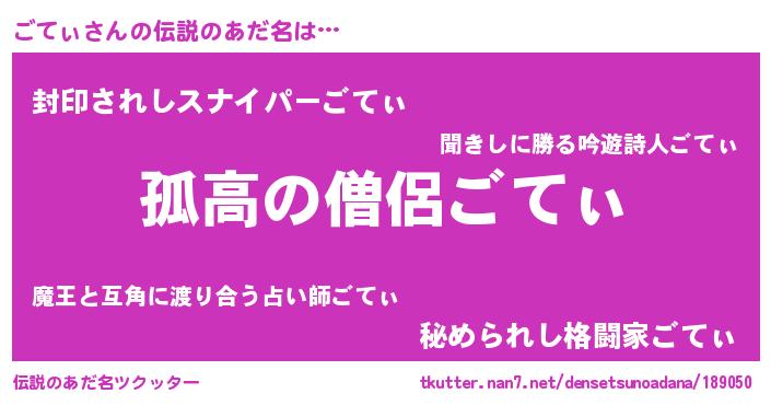 | ヒーロー風カッコイイあだ名 | 『超時空戦士ゴティ』『幻影騎士ゴテ』 |