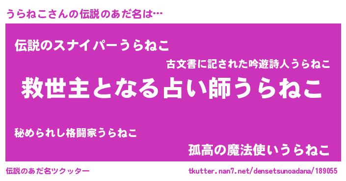 | 意味不明あだ名 | 『住所不定無職うらねこ(50歳)』 |