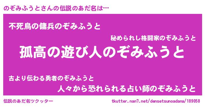 | 意味不明あだ名 | 『住所不定無職のぞみふうと(79歳)』 |