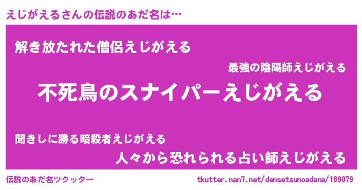 | 意味不明あだ名 | 『自称えじがえる』『ペロリンえじがえる』 |