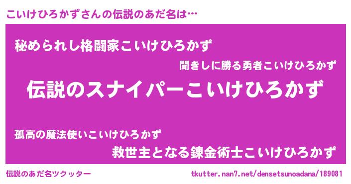 | ヒーロー風カッコイイあだ名 | 『スーパーコイケヒロカズ』 |