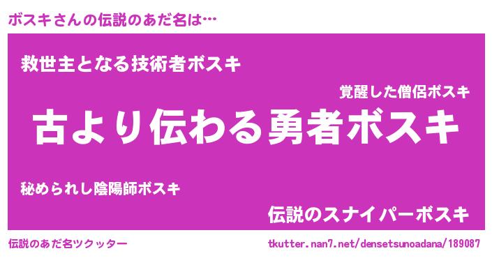 | ヒーロー風カッコイイあだ名 | 『ネオボスキ』『仮面ボスダー』 |