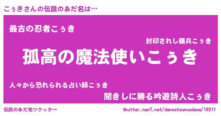 | 胡散臭い通販商品みたいなあだ名 | 『信頼と実績のサプリメント…その名も「こぅき」』 |