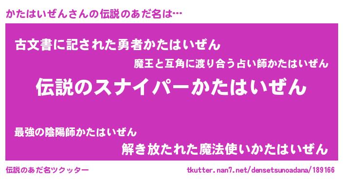 | 胡散臭い通販商品みたいなあだ名 | 『必ず成功する霊験あらたかなお札…その名も「かたはいぜん」』 |