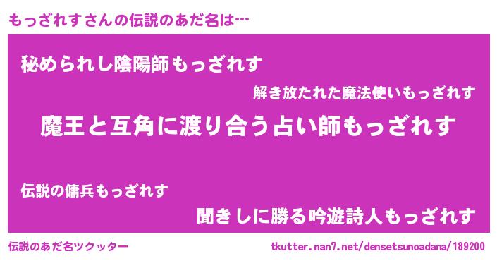 | ヒーロー風カッコイイあだ名 | 『愛の使者もっざれす』『ネオモッザレス』 |