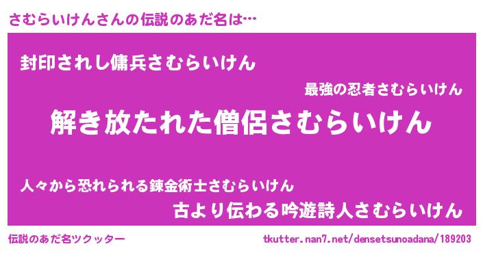 | 意味不明あだ名 | 『とにかく怪しいさむらいけん』 |