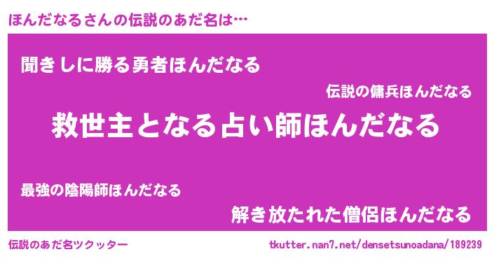 | ヒーロー風カッコイイあだ名 | 『天空の使者ほんだなる』『銀牙騎士ホン』 |
