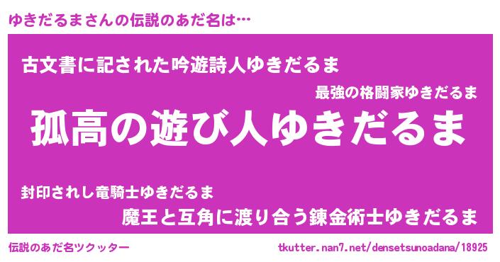 | ヒーロー風カッコイイあだ名 | 『魔戒騎士ユキ』『ネオユキダルマ』 |