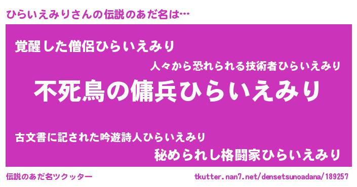 | 意味不明あだ名 | 『ペロリンひらいえみり』 |