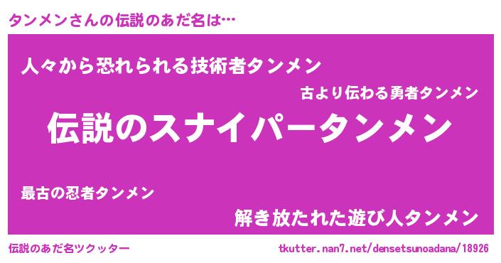 | 胡散臭い通販商品みたいなあだ名 | 『必ず成功する霊験あらたかなお札…その名も「タンメン」』 |