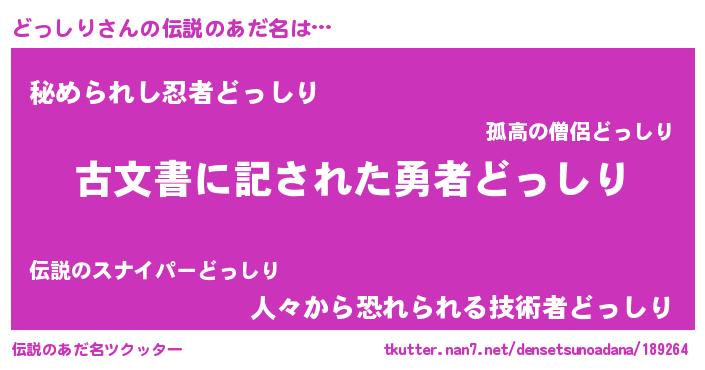 | 意味不明あだ名 | 『自称どっしり』『めかぶ科どっしり属』 |
