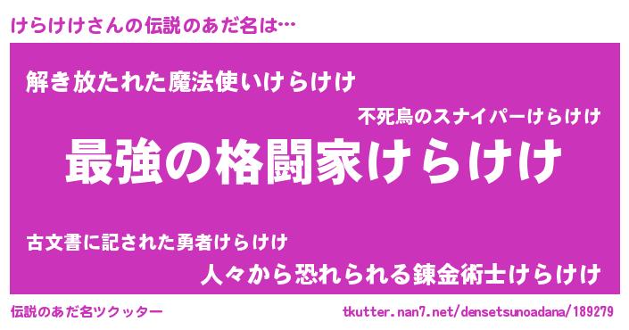 | ヒーロー風カッコイイあだ名 | 『ウルトラけらけけマン』『天弓騎士ケラ』 |