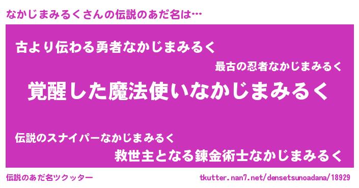 | ポケモン風あだ名 | 『ヒナカジマミルク』『ゼニナカ』 |