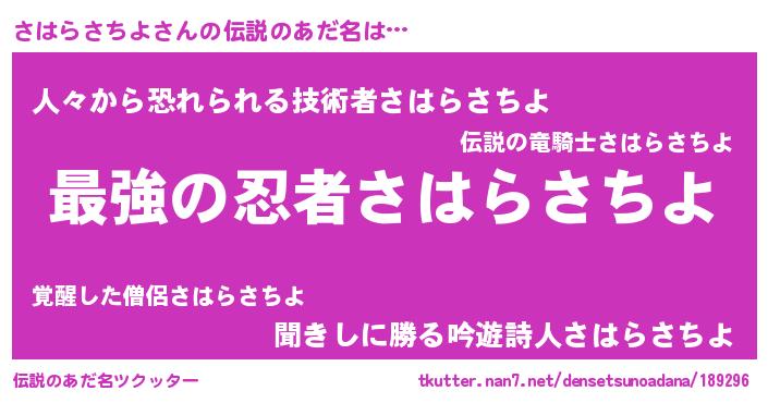 | ファンタジー風あだ名 | 『エターナルサハラサチヨー』 |