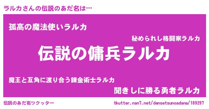 | 胡散臭い通販商品みたいなあだ名 | 『必ず成功する水晶球…その名も「ラルカ」』 |