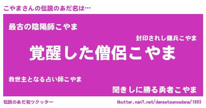 | 男性向けラノベタイトル風あだ名 | 『こやまの嫁は女の子じゃないと思った?』 |