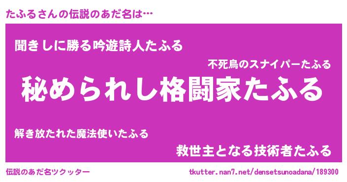 | 男性向けラノベタイトル風あだ名 | 『魔弾の王とたふる』『緋弾のタフル』 |