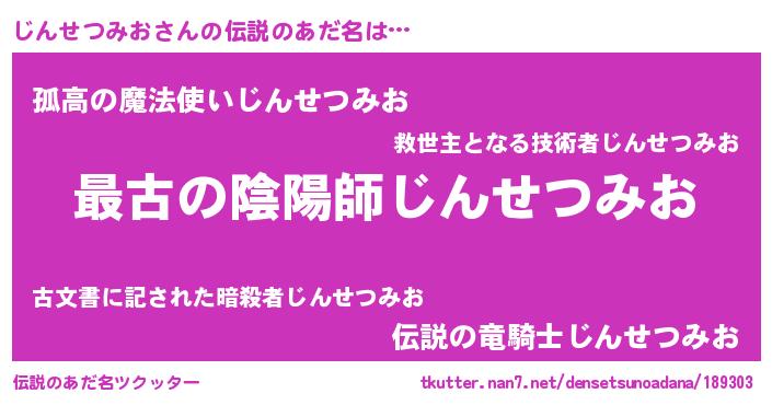 | 意味不明あだ名 | 『じんせつみおフォーエバー』 |