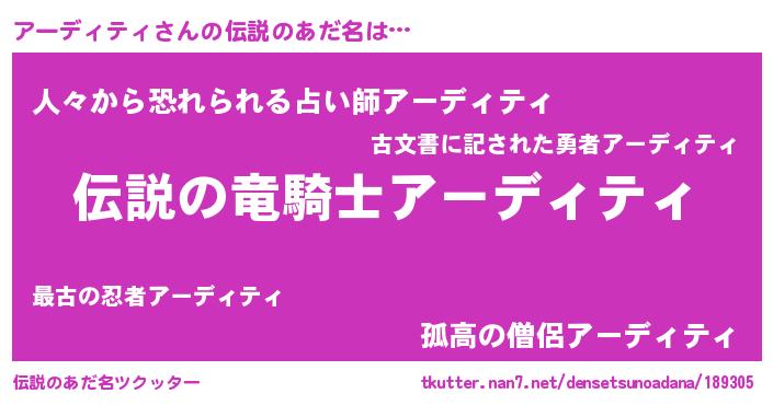 | ヒーロー風カッコイイあだ名 | 『スーパーアーディティ』『幻影騎士アー』 |