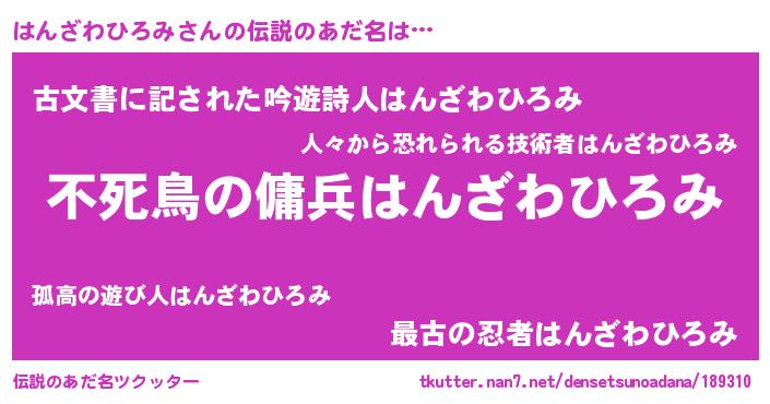 | ヒーロー風カッコイイあだ名 | 『仮面ハンダー』『ネオハンザワヒロミ』 |