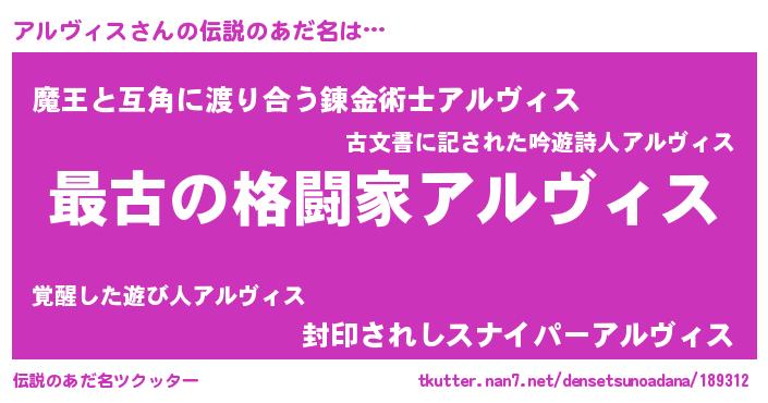 | 欧米人風あだ名 | 『アルヴィスクリステル』 |