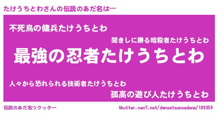 | 肩書あだ名 | 『たけうちとわ大統領』 |