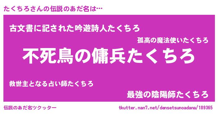 | ヒーロー風カッコイイあだ名 | 『スーパータクチロ』『ネオタクチロ』 |
